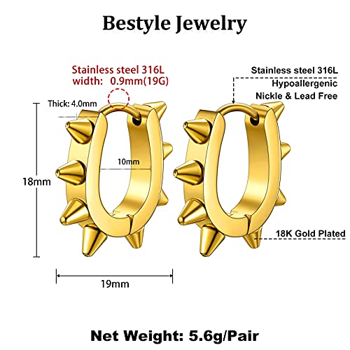 Bestyle Orecchini Cerchio Piccoli Oro 10 mm Rivetti Orecchini Cerchietto Donna Oro Punk Hip Hoop Hippie Cool con Confezione Regalo