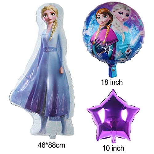 【Frozen Decorazioni di compleanno】 - 2 palloncini in alluminio Stella, 1 banner HAPPY BIRTHDAY, 1 * Palloncino principessa di ghiaccio, 2 * Palloncino rotondo in foglio di alluminio, 20 * Palloncini opachi.