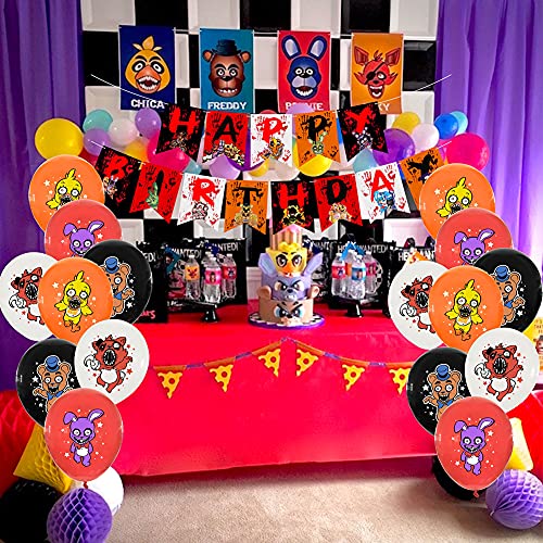 BESTZY Decorazioni per Festa di compleanno di Five Nights at Freddy,Kit Decorazioni Palloncini Inclusi Striscione,Compleanno lattice palloncini, Decorazione per Torta
