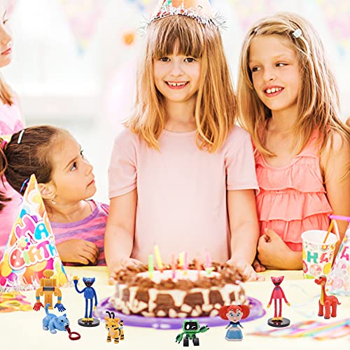 BESTZY Huggy Wuggy Poppy Playtime Figurines Cake Toppers Decorazioni Festa di Compleanno per Bambini e Baby Shower Forniture per la Decorazione della Torta della Festa di Compleanno 8Pezzi