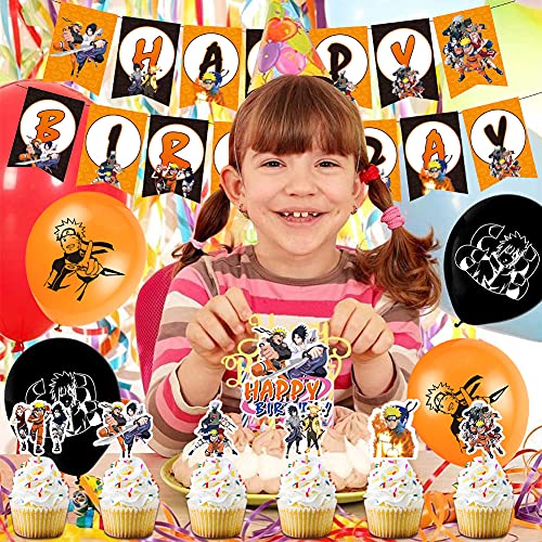 BESTZY Naruto Decorazioni Compleanno Forniture Party Supplies Palloncini Buon Compleanno Ornamenti includono Banner per Feste Tema di Compleanno