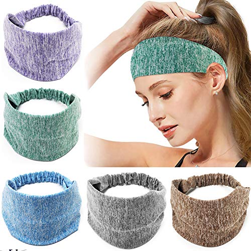 BESTZY 5 Pezzi Sport Fascia Capelli per Uomo e Donna, Elastico Cerchietto per Capelli Non Scivolare umidità Wicking Atletico Cotone Fascia, Elastico Sportivo Fascia per Fasce Fascia
