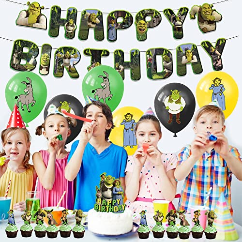 BESTZY Shrek Palloncini di Compleanno Shrek Addobbi Tema Festa Compleanno Striscioni di Buon Decorazione per Torta Palloncino per Bambini Feste di Forniture 32pcs