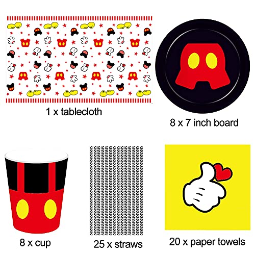 BESTZY Stoviglie per Feste a Mickey Mouse 61pcs Mickey Tema Forniture per Feste,Set di Articoli per Feste Piatti Tazze Tovaglioli Tovaglia e Addobbi, Forniture per Feste di Compleanno(8 Ospiti)