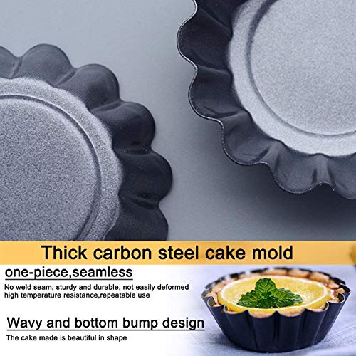 BESTZY Teglia per torte, stampo per torte, stampo per torte, confezione da 8 stampi per torte, rivestimento antiaderente, stampo per quiche per torte, budino, flan (nero, Ø 6,5 cm)