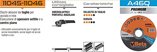 Beta 11046 1.6 Mole Abrasive da Taglio per Acciaio e Inox, Mole per Smerigliatrice, Diametro 125 mm, Spessore 1.6 mm, Foro da 22.23 mm