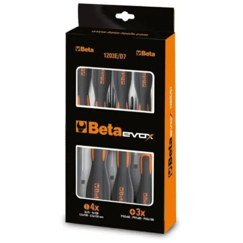 La serie cacciavite Evox intaglio e croce PH 10 Pz. Beta 1203E/D10 è un pratico assortimento di utensili manuali ideali per svariati utilizzi professionali.Questo prodotto fornito in scatola di cartone si compone di 10 pezzi, nello specifico:- 6x Beta 1201E Cacciavite a lama piatta da 0,4x2,5x50 - 0,5x3x75 - 0,8x4x100 - 1,0x5,5x100 - 1,2x6,5x150 - 1,2x8x150 mm- 4x Beta 1202E Cacciavite a croce Phillips misure PH0x3x60 - PH1x4,5x80 - PH2x6x100 - PH3x8x150 mmL'immagine è puramente illustrativa. Tipologia: Assortimento cacciaviti Serie: Evox Contenitore: Scatola Pezzi per confezione: 10 Dotazione: Cacciaviti Beta Evox Utilizzo: Universale Valigetta: No