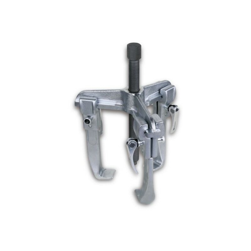 Estrattore universale a tre griffe con regolazione e chiusura rapida delle griffe Caratteristiche: • Impiego sia per esterni sia per interni • Griffe mobili lungo la traversa • Bloccaggio delle griffe mediante sgancio rapido a leva