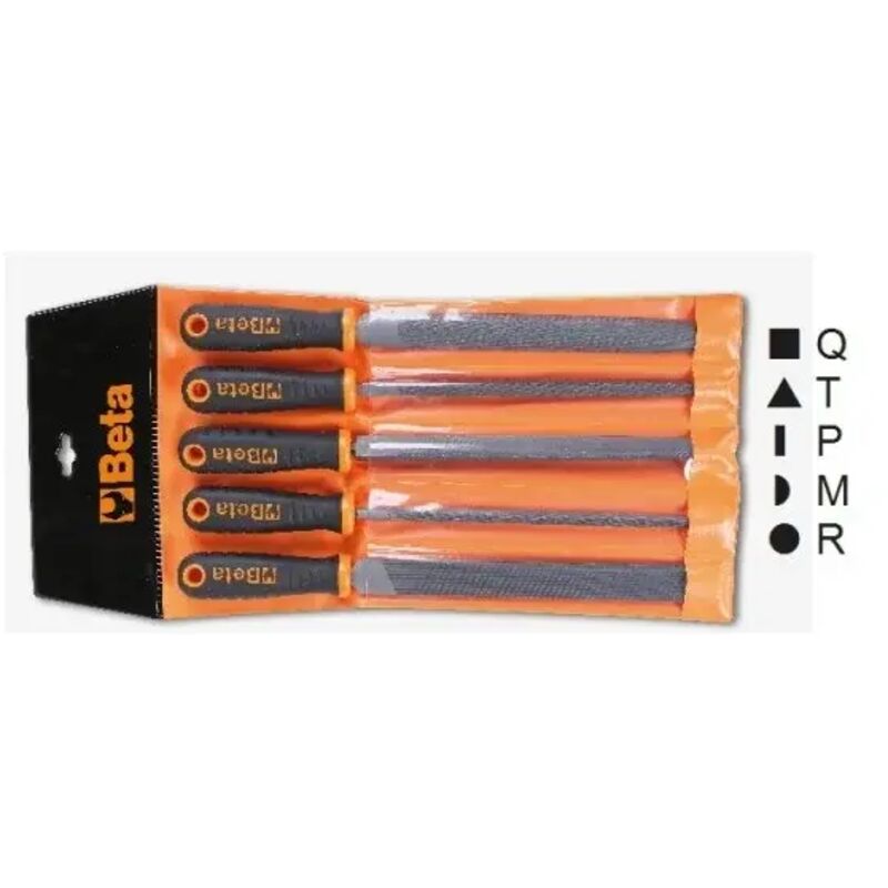 Serie di 5 lime a taglio mezzodolce, con impugnatura in busta appendibile - Beta 1719BMA8/B5 Cod. Art. L mm L 017190298 1719BMA8/B5 250 10