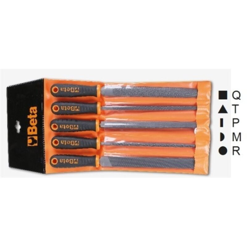 La busta lime con impugnatura a taglio mezzodolce 5 Pz. Beta 1719BMA8/B5 è un assortimento di utensili manuali professionali forniti in busta appendibile.Questo assortimento comprende cinque lime Beta a taglio mezzodolce di lunghezza 200 mm dei seguenti profili: quadro, piatto, triangolare, tondo e mezzotondo. Tipologia: Serie di lime Taglio: Mezzodolce Pezzi per confezione: 5 Dotazione: Lime di varie forme Utilizzo: Professionale Dimensioni: Lunghezza 200 mm - 8