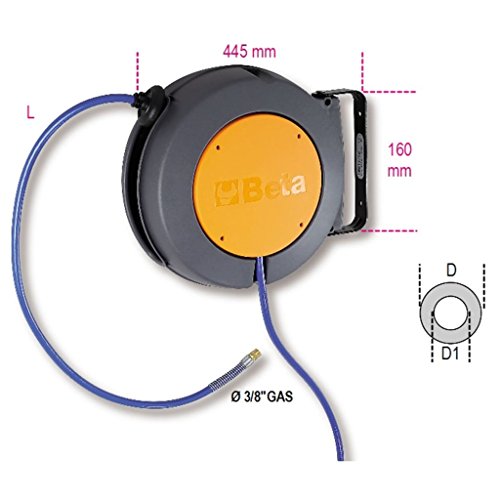 Beta 1901T/10 Avvolgitubo Automatico con Corpo in Materiale Plastico Antiurto per Aria Compressa o Acqua Fredda