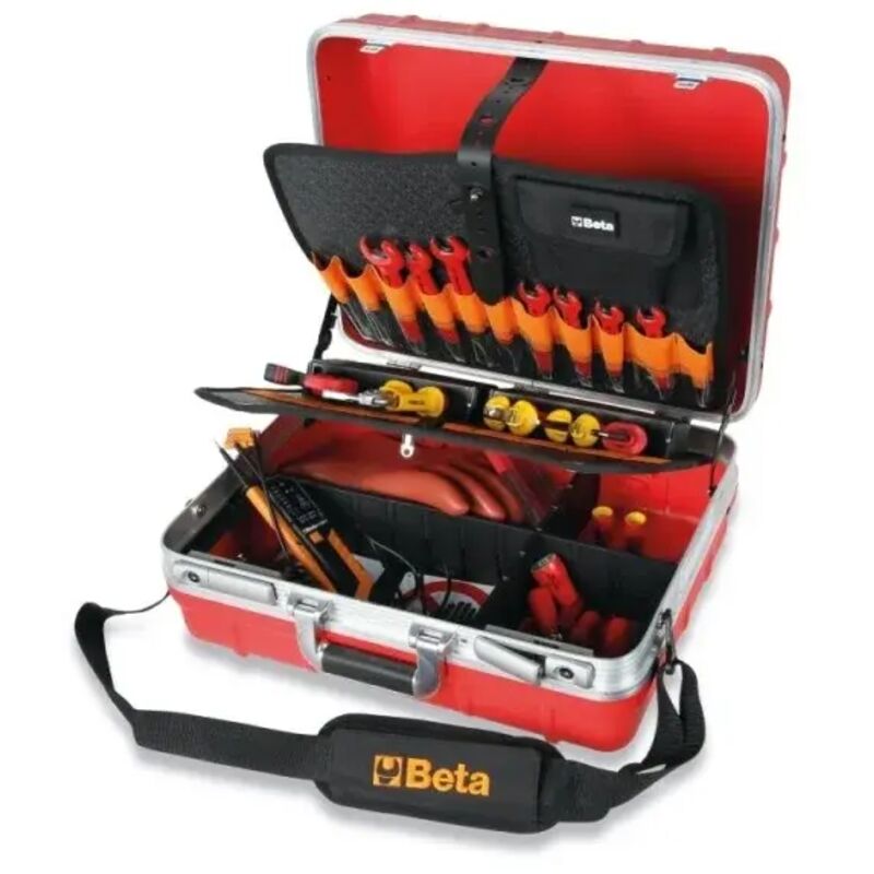 La valigetta con assortimento per veicoli ibridi o elettrici 43 Pz. Beta 2029EM è una soluzione professionale ideata per offrire al professionista una dotazione di utensili manuali completa indicata per interventi di manutenzione e riparazione su veicoli ibridi ed elettrici.Questa valigetta compatta è indicata per interventi anche immediati in caso di emergenza, viene infatti fornita completa di una dotazione che comprende anche cartelli di segnalazione del pericolo e guanti isolati. Gli interventi di manutenzione di veicoli elettrici richiede la massima attenzione alla sicurezza e la massima precisione, per questo Beta ha pensato ad una dotazione completa che possa risultare sia efficace per ogni genere di intervento che garantire la massima protezione per il lavoratore.La valigetta con assortimento Beta 2029EM offre una dotazione completa di 43 pezzi e nello specifico comprende:13x Beta 52MQ Chiavi a forchetta isolate 1000 V