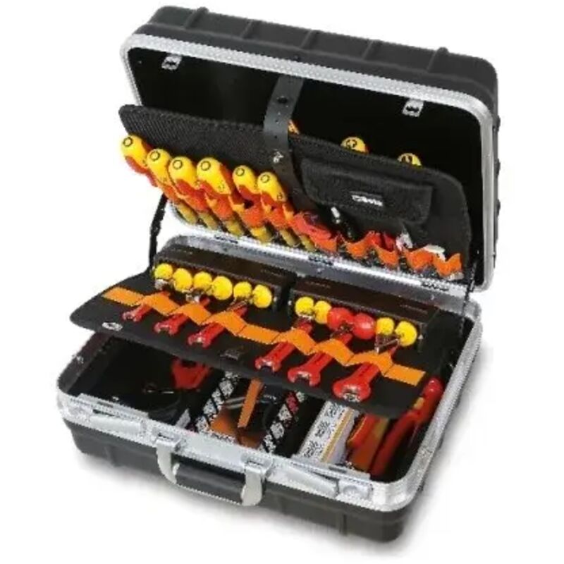 Il trolley con assortimento per elettrotecnica 98 Pz. 020361218 Beta 2036EL/B è un resistente trolley portautensili in polipropilene ad alto spessore.Pratico e versatile, dotato di manico telescopico e ruote con cuscinetti a sfera per facilitarne il trasporto, viene fornito con due pannelli portautensili e fondo interno con divisori.Il trolley Beta 2036EL/B, profilato in alluminio per una maggior solidità, viene fornito con assortimento Beta 5980EL/B per elettronica, composto da 98 pezzi.Nello specifico la dotazione comprende:- 1x Beta 73/B13N Set da 13 chiavi a forchetta doppie piccole misura 4÷14 mm- 1x Beta 96/SC9 Set di 9 chiavi maschio esagonali piegate 1,5÷10 mm- 1x Beta 97TX/BG8 Set di 8 chiavi maschio con impronta Torx misure T9 - T10 - T15 - T20 - T25 - T27 - T30 - T40- 1x Beta 111 Chiave regolabile a rullino 150 mm- 1x Beta 900/C13-5 Assortimento da 13 bussole e 5 accessori 1/4- 1x Beta 990 Pinzetta a molla a punte fini dritte 130 mm- 1x Beta 991 Pinzetta punte fini curve
