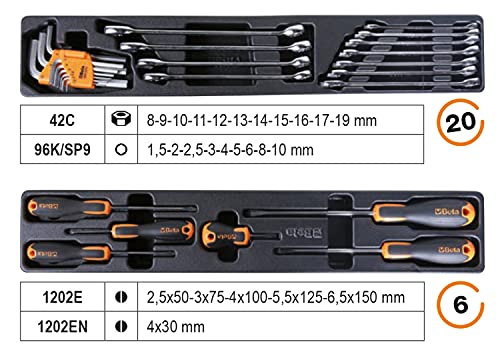 Beta 2120L-E/T91-I - Cassetta Porta Attrezzi In Metallo Con Set Di 91 Attrezzi Per La Manutenzione Generale, In Termoformato, Contiene: Chiavi A Bussola, Chiavi Maschio, Prolunghe, Pinze