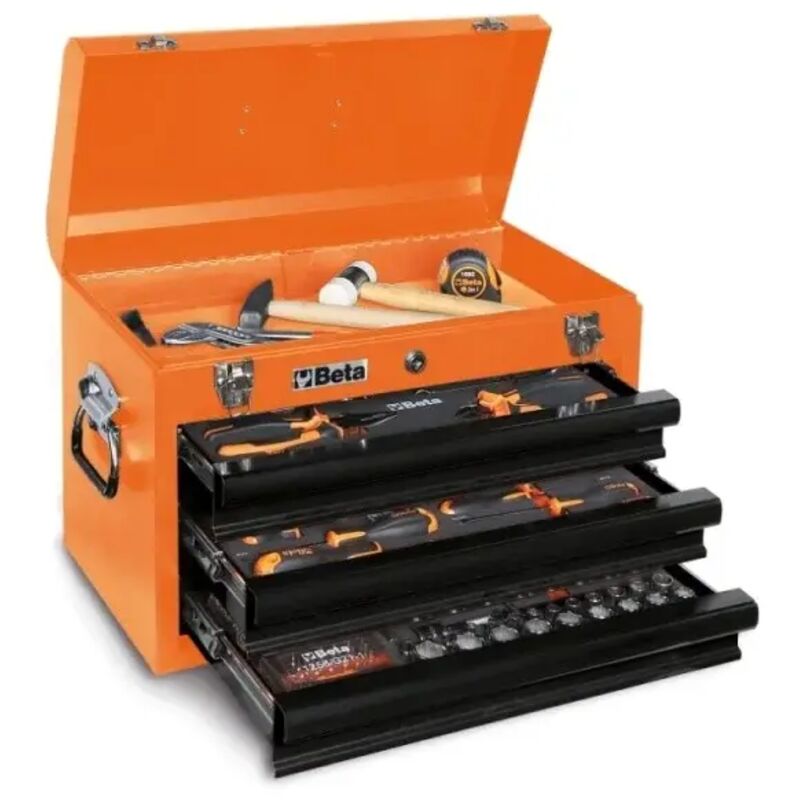 La cassettiera Beta 2200E/21 è una cassettiera portatile con assortimento di 159 utensili disposto in vassoio morbido in EVA.Dotata di tre cassetti da 435x210x50 mm, montati su guide telescopiche a sfera.Il vano superiore è caratterizzato dalle seguenti misure 505x256x60 mm, la serratura centralizzata è frontale.>br>Questa cassettiera dispone di comoda maniglia sul coperchio e maniglie laterali a scomparsa che ne facilitano il trasporto.Dotazione:MCE-142C: 8-10-11-12-13-14-15-17-19 mm1082CM: 160 mm1150CM: 180 mm1770A: 9 mm1770RL: 10xMCE-296BPC/SK9: 1,5-2-2,5-3-4-5-6-8-10 mm1201E: 2,5x50-3x75-4x100-5,5x125 mm1201EN: 4x301202E: PH1x80-PH2x1001202EN: PH1X30 mm1253: 3,5x100 mmMCE-3861/C611256/C21-1: 4 mmC900/48: 150 mmC920/72: 260 mmC900/25C900/42: 115 mmC900ADC900: 4-4,5-5-5,5-6-7-8-9-10-11-12-13-14 mmC900/20: 50 mmC900/20L: 100 mmC920/25C920/22: 250 mmC910/16F: 3/8 - 1/2C920A: 13-14-15-16-17-18-19-21-22 mm1692: 5 mm1370C: 300 g1128BMXC: 150 mm1048C: 250 mm Tipologia: Cassettiera