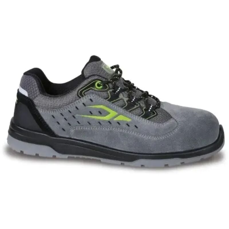 Le Beta 7317NA sono scarpe antinfortunistiche realizzate in pelle scamosciata traforata con supporto di stabilità nel tallone.La suola è realizzata in poliuretano bidensità ed il puntale è in materiale polimerico, in grado di offrire resistenza da 200 Joule.La suona in fibra composita con trattamenti ceramici garantisce una buona antiperforazione ed il sottopiede anatomico dispone di rialzo ammortizzante nella zona del tallone. Tipologia: Scarpe antinfortunistiche basse Lamina antiperforazione: Fibra composita Puntale: Composito Normativa Europea: S1P SRC Suola: Poliuretano bidensità Intersuola: Ammortizzata sul tallone Antiolio: Si Antiscivolo: Si Resistenza suola: Olii, idrocarburi, solventi Tomaia: Pelle scamosciata traforata Metal Free: Si Protezione punta: 200 Joule Plantare: Anatomico Chiusura: Stringhe Colore: Grigio Certificazione: EN ISO 20345-2011 Resistenza alle flessioni: Si Assorbimento energia: Si Peso: 550 g (Tg.42)