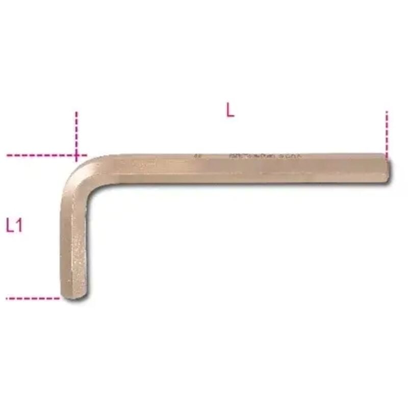 Chiavi maschio esagonale piegate antiscintilla. Tipologia: Standard Unità di misura: Millimetri Profilo: Brugola Certificazione: 99/92/ec Trattamento: Antiscintilla Inclinazione: 90