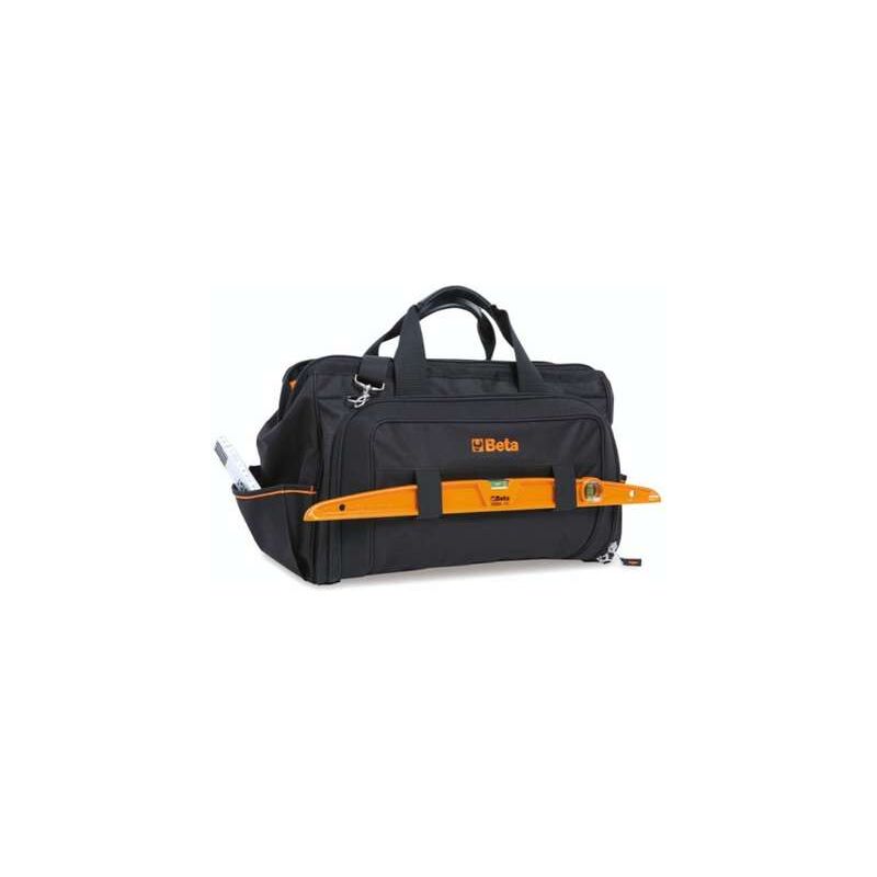 Borsa portautensili in tessuto tecnico vuota Base rigida Tasche interne ed esterne per l'inserimento di utensili Tasca esterna con chiusura a zip per maggior sicurezza Tasca chiudibile con strappo per oggetti personali Doppio fondo Doppio laccio per livelle Tracolla per facilitare il trasporto Dimensione borsa: 550x280x320 mm Peso: 2,6 Kg