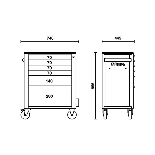 Dimensione: 4 cassetti altezza 70 millimetri, 1 cassetti altezza 140 millimetri, 1 cassetto altezza 280 millimetri
