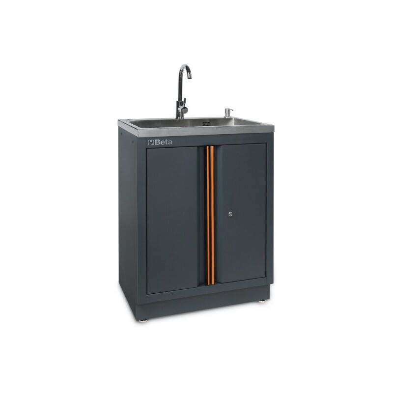 Il modulo fisso con lavandino integrato per arredamento officina C45PRO ML Beta è un modulo per arredo officina della linea C45PRO. Moderno ed elegante, questo modulo per arredamento officina Beta completo di lavandino con doppia antina ha misure interne utili di 60x60,3x41,6 cm. Il modulo fisso arredo officina C45PRO ML Beta dotato di vasca in acciaio inox è completo di serratura, piedini regolabili in altezza, un rubinetto miscelatore, un gruppo di scarico, un tappo filtro, un tappo di chiusura ed un pratico erogatore per sapone. Il modulo fisso per arredo officina C45PRO ML Beta è perfetto per ogni necessità ed utilizzo, per professionisti ed hobbisti, adatto sia come modulo singolo che come parte di una combinazione Beta C45PRO. Tipologia: Modulo fisso per arredo officina Modello: C45PRO Utilizzo: Officina, Laboratorio Dimensione: 68x94,8x45,8 cm Serratura: Sì Accessori forniti: Rubinetto miscelatore, gruppo di scarico, tappo di chiusura, tappo filtro ed