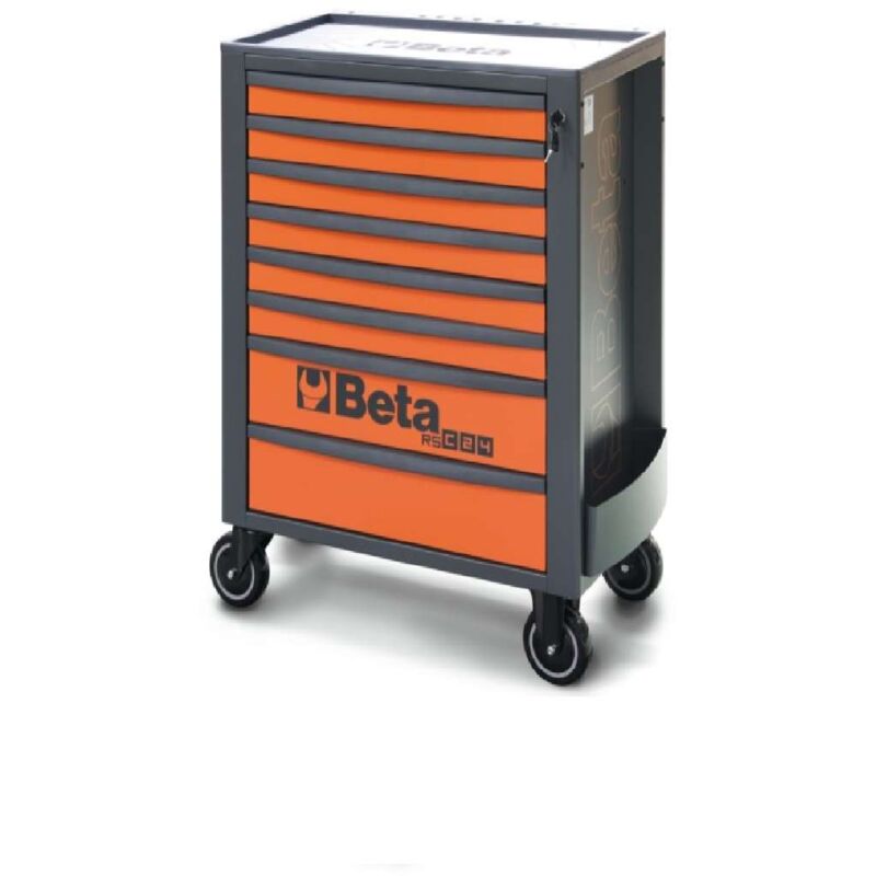 Cassettiera porta attrezzi con 8 cassetti La cassettiera portautensili Beta RSC24/8 è l'evoluzione della storica cassettiera C24S, progettata per soddisfare le esigenze di ogni professionista. La struttura robusta e i materiali impiegati garantiscono un'elevata qualità e una lunga durata nel tempo. Il design, ispirato al mondo Racing, conferisce alla cassettiera uno stile accattivante e inconfondibile. RSC24/8 è inoltre disponibile in 7 colorazioni diverse e personalizzabile al massimo, grazie all'ampia gamma di accessori disponibili. Modello 8 cassetti da 588x367 mm a estrazione totale, montati su guide telescopiche a sfera: 6 cassetti altezza 70 mm 2 cassetti altezza 140 mm Caratteristiche: Piano di lavoro rinforzato in ABS, solido e robusto Piano di appoggio multifunzione con bordi anticaduta e 8 fori per l'alloggiamento dei giravite 4 ruote Ø 125 mm di cui 2 fisse e 2 girevoli (una con freno) Serratura di sicurezza centralizzata frontale Capacità di carico statico pari a 800 kg