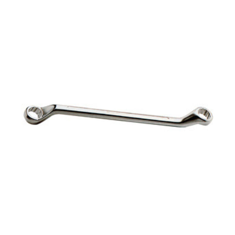 Art. 93 doppia curva speciale per ponteggi, esecuzione cromata, teste lucide. UNI 6740 - DIN 838 Misura dadi 21x22 mm. Lunghezza 310 mm. Peso 580 g.