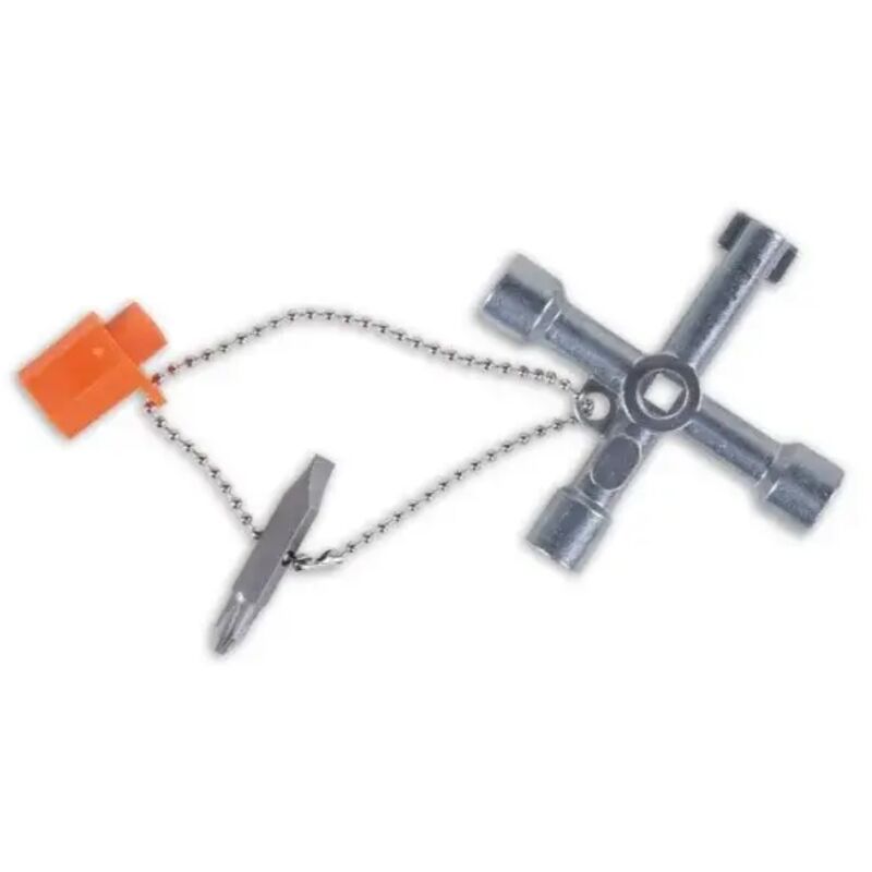 Chiave utilizzabile per la manutenzione in numerosi settori come quello elettrico, idraulico, ventilazione, gas e altro. Caratteristiche Tecniche: Quadro da 5 / 6 / 7-8 mm Triangolo da 9 mm Alette 3-5 mm Esagono 1/4 Inserto doppio con intaglio 1,0x7 mm e impronta a croce PH2