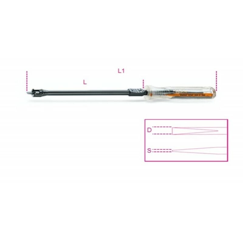 Giravite prensile per viti a testa - Beta 1250 Con intaglio La guaina in plastica, caricata da una molla, trattiene la vite sulla lama. SxDxL mm: 0,5x3x125 L1 mm: 190 Peso g: 36