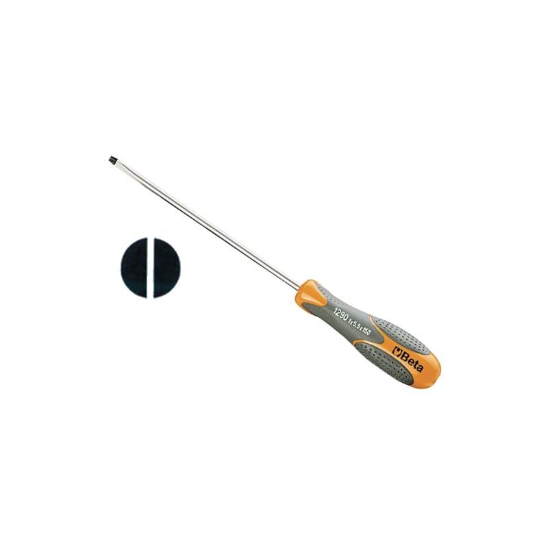 Giraviti Beta Max 1290 Giravite per viti a testa con intaglio. Lama in acciaio ad elevato tenore di Molibdeno, Carbonio e Vanadio, garanzia di migliori prestazioni in termini di resistenza alla torsione, flessione, durezza superficiale e tenacia. La cromatura satinata preserva la lama dell'utensile dall'ossidazione nel tempo. Impugnatura in polipropilene, elestico, resistente e stabile nel tempo, l'anima centrale è tenacemente ancorata alla base della lama, il punto principale di applicazione della coppia torcente. UNI 10562 - ISO 2380 - DIN 5265 3x75 mm.