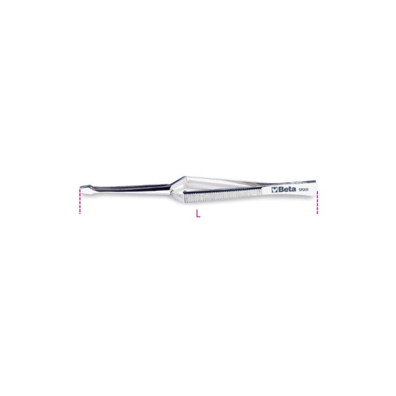 Pinzetta a molla a becchi larghi diritti incrociati zigrinati in acciaio inossidabile. Unità di misura: Millimetri Tipologia: Becchi larghi diritti incrociati, zigrinati Materiale: Acciaio inossidabile Utilizzo: Elettronica Impugnatura: Metallo
