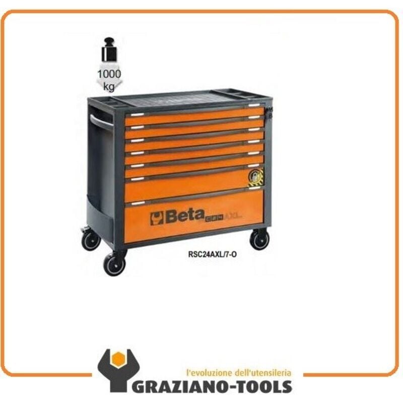 La cassettiera lunga antiribaltamento 7 cassetti Beta RSC24AXL/7 è una cassettiera modello lungo ideale per le officine ed i garage di professionisti e non.Questo prodotto è realizzato con materiali di altissima qualità che lo rendono robusto ed altamente resistente e durevole. Dotato di 7 cassetti da 882x367 di cui cinque da 70 mm, uno da 140 mm ed uno da 210 mm, tutti montati su guide telescopiche a sfera che ne consentono un'estrazione totale. Il piano dei cassetti è protetto da un tappetino in gomma espansa per evitare danneggiamenti riponendo gli utensili.Questa cassettiera Beta è dotata di sistema antiribaltamento per ridurre il rischio di incidenti.Facilmente movimentabile grazie alle quattro ruote, potrete spostare a piacimento questa cassettiera in maniera rapida e senza fatica.La cassettiera lunga Beta RSC24AXL/7 presenta un ampio piano di lavoro rinforzato in ABS, dotato di bordi anticaduta, fori per l'alloggiamento di otto giravite e sei vaschette portaminuterie. Il piano