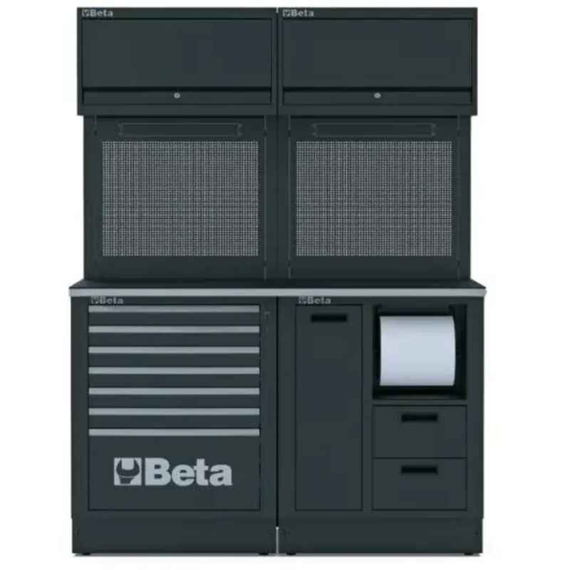 La combinazione completa arredamento officina 050001005 Beta RSC50 A è la soluzione ideale per l'arredo di garage ed officine professionali: versatile, ampia e spaziosa, questa arredo officina è la risposta a tutte le necessità del professionista.Questa nuova linea di arredamento per officine è caratterizzata dalla facilità di montaggio, studiata per rendere le operazioni iniziali il più rapido possibile e semplificare l'installazione della composizione. Realizzata e progettata in Italia, questa nuova linea Beta RSC50 è indicata per la realizzazione di soluzioni personalizzate grazie al sistema modulare che consente di selezionare i pezzi di arredamento più indicati alle proprie necessità, oppure semplicemente scegliendo una soluzione completa preimpostata.Le cassettiere offrono ampio spazio per riporre i propri utensili manuali e non solo: infatti grazie alle misure standard interne dei cassetti risultano compatibili con un'ampia gamma di termoformati morbidi e rigidi Beta
