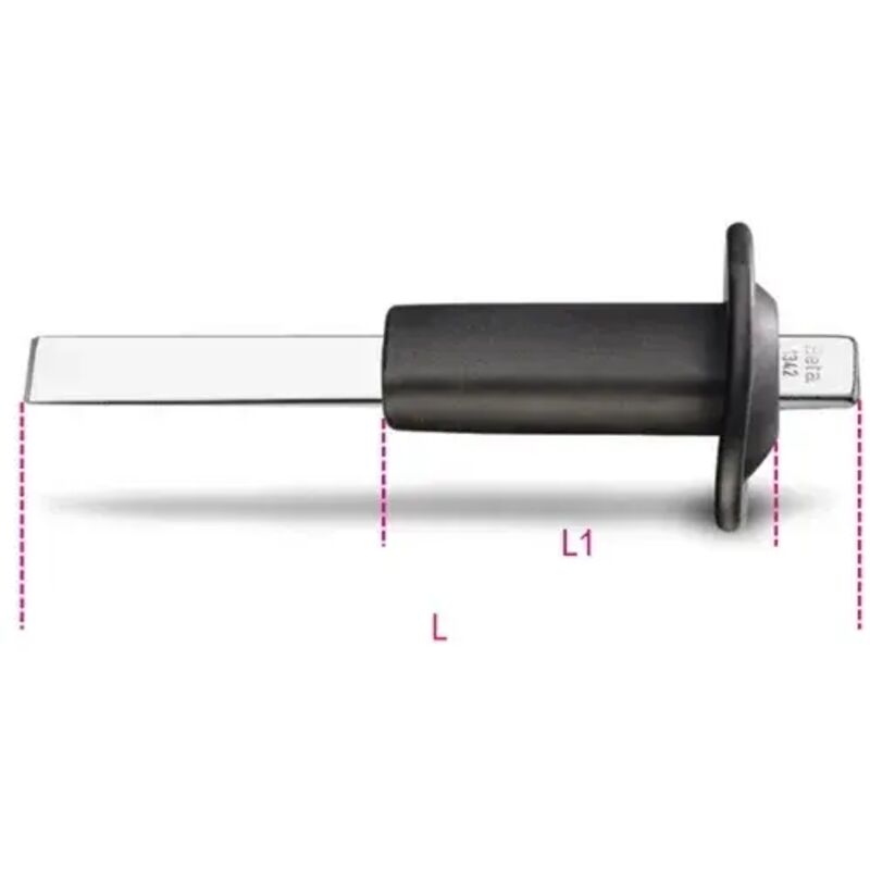 Scalpello extrapiatto con tagliente diritto con paramano. Lunghezza: L 235 mm - l1 118 mm