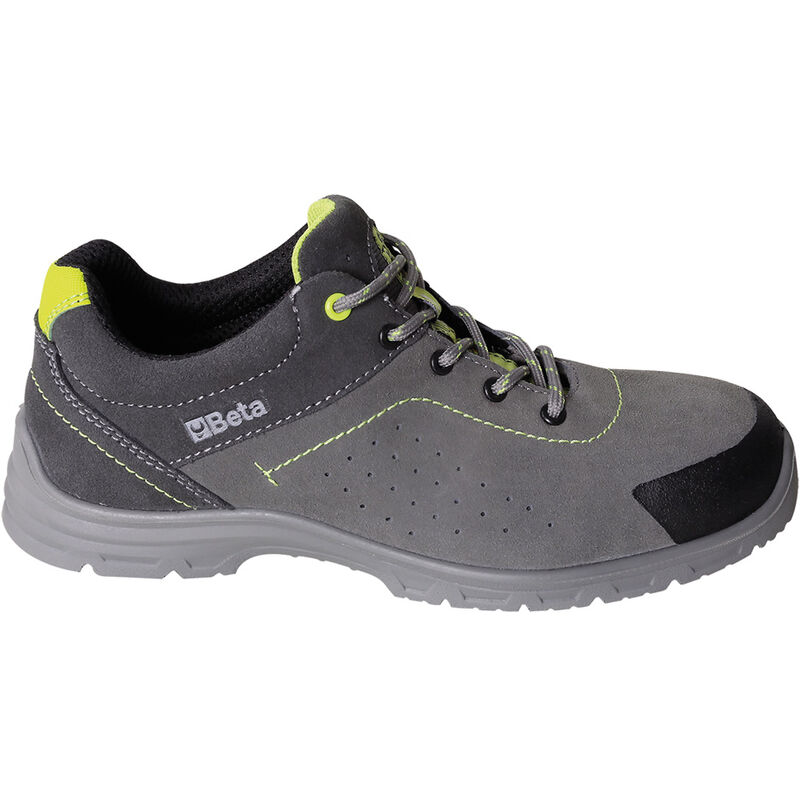 In pelle scamosciata traforata con inserto antiabrasione nella zona del puntale. Resistenza '200 Joule'. Suola poliuretano monodensità. Puntale in materiale polimerico. Antiperforazione in fibra composita con trattamenti ceramici. Sottopiede anatomico in carbon. Leggere ed estremamente flessibili, non sono indicate per lavori di particolare gravosità (edilizia, agricoltura, industria pesante). Conformi alla normativa EN ISO 20345-2011 CE. Grado di protezione 'S1P'.