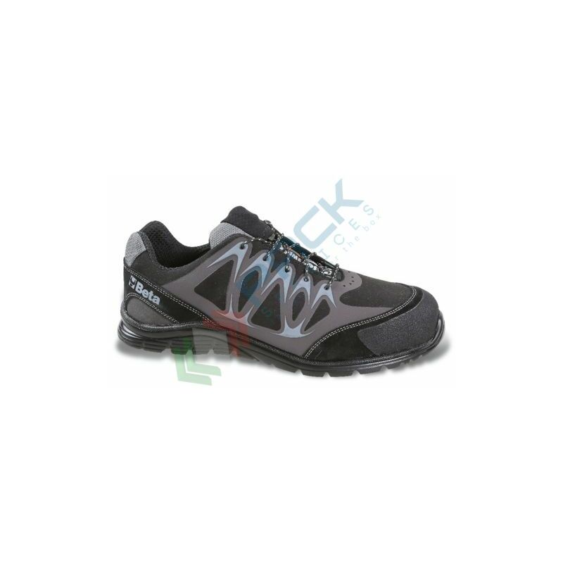 Tomaia:Micro pelle scamosciata idrorepellente con inserti PU Alta Frequenzae rinforzo protettivo del puntale in crosta scamosciataSuola:Poliuretano monodensitàPuntale:Alluminio, resistenza 200 jouleAntiperforazione:Fibra composita con trattamenti ceramiciSottopiede:Anatomico con rialzo ammortizzante nella zona del tallonePeso:470 (g)Taglie:EU: 36-47 UK: 3,5-12Note: Estremamente leggere - peso indicativo misura 42: 470 g Sistema di chiusura FixLock, semplifica la calzata e lo sfilamento della scarpa (in dotazione anche stringhe tradizionali)