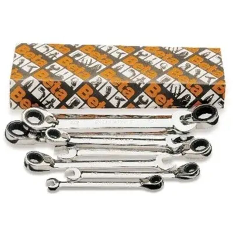 Serie di 8 chiavi combinate a cricchetto Beta reversibile in pollici beta (art.142AS) Misure: 5/16 - 3/8 - 7/16 - 1/2 - 9/16 - 5/8 - 11/16 - 3/4