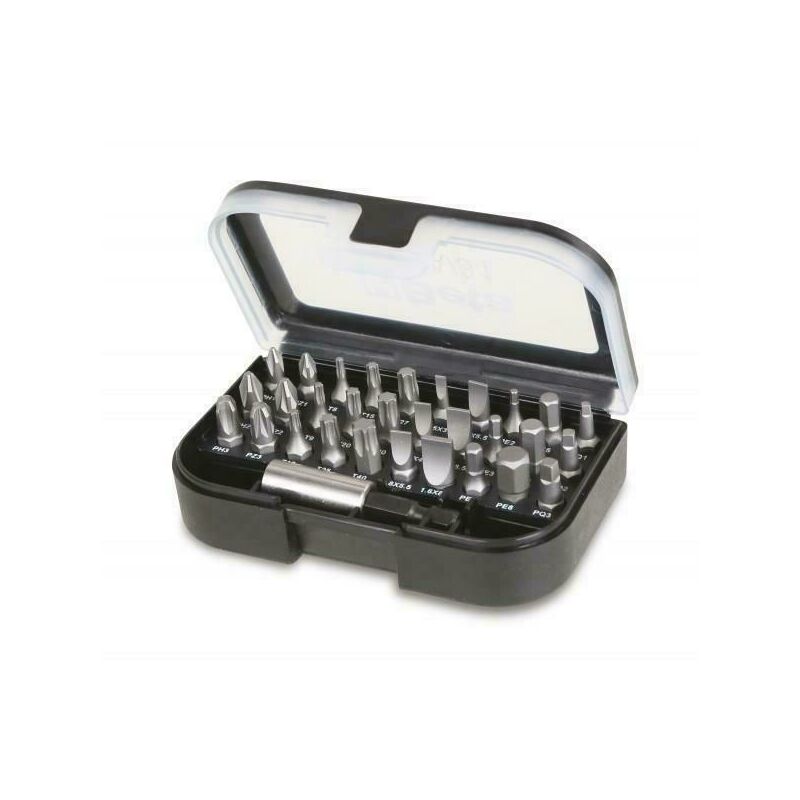 Descrizione Set composto da 30 inserti per avvitatori + Portainserti magnetico. Massima qualita' dei materiali In pratico astuccio rigido con attacco cintura. Inserti per avvitatori per viti a testa con intaglio: 0,5x3 - 0,6x4,5 - 0,8x5,5 - 1,0x5,5 - 1,2x6,5 - 1,6 x8mm;