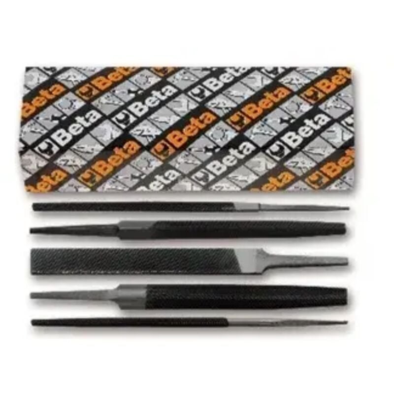 Serie di 5 lime a taglio mezzodolce (art. 1718a6). Tipologia: Lima a taglio Profilo: Quadro/triangolare/piatto/mezzotondo/tondo Taglio: Mezzodolce Contenuto serie: Beta 1718a6/q/t/p/m/r Pezzi per confezione: 5 Lunghezza: 150 mm - 6