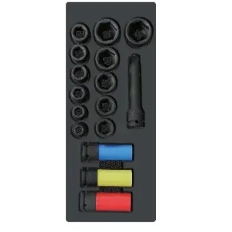 Il termoformato rigido T111 Beta è un assortimento di utensili disposti su termoformato in ABS, pratico e versatile. Questo prodotto si adatta perfettamente a tutti i modelli di cassettiere e carrelli arredo officina Beta, ma risulta adeguato anche per altre soluzioni di arredamento.La dotazione di questo termoformato rigido comprende 16 pezzi, nello specifico:- 12x Beta 720 Chiavi a bussola macchina da 1/2 misure 10 - 13 - 15 - 17 - 18 - 19 - 21 - 22 - 24 - 27 - 30 - 32 mm- 3x Beta 720LC Chiavi a bussola macchina per dadi ruote misure 17 - 19 - 21 mm- 1x Beta 720/21 Prolunga macchina con attacchi quadri maschio e femmina 1/2 da 125 mm Tipologia: Termoformato rigido Contenitore: Rigido in ABS Pezzi per confezione: 16 Dotazione: Bussole macchina da 1/2 Prodotti correlati: Arredo Officina Beta Utilizzo: Cassettiere e carrelli Beta Peso: 2,7 kg Valigetta: No
