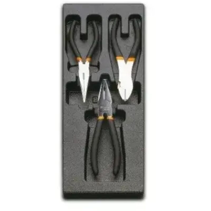 Il termoformato rigido T138 Beta è un assortimento di utensili disposti su termoformato, pratico e versatile. Questo prodotto si adatta perfettamente a tutti i modelli di cassettiere e carrelli arredo officina Beta, ma risulta adeguato anche per altre soluzioni di arredamento. Questo articolo è composto da: - 1x Beta 1084 Tronchesi a grande effetto taglienti diagonali 160 mm - 1x Beta 1150 Pinza universale 180 mm - 1x Beta 1166 Pinza a becchi mozzotondi diritti 160 mm Utilizzo: Cassettiere e carrelli Tipologia: Termoformato rigido Assortimento: Pinze e tronchese con finitura industriale Contenitore: ABS Pezzi per confezione: 3 Peso: 650 g Valigetta: No