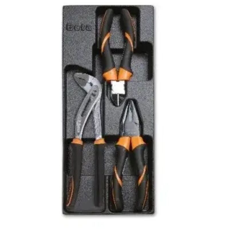Il termoformato rigido T157 Beta è un assortimento di utensili disposti su termoformato, pratico e versatile. Questo prodotto si adatta perfettamente a tutti i modelli di cassettiere e carrelli arredo officina Beta, ma risulta adeguato anche per altre soluzioni di arredamento. Questo articolo è composto da: - 1x Beta 1082BM Tronchesi a taglienti diagonali 160 mm- 1x Beta 1150BM Pinza universale 180 mm- 1x Beta 1048BM Pinze regolabili a cerniera chiusa impugnatura bimateriale 250 mm Utilizzo: Cassettiere e carrelli Tipologia: Termoformato rigido Assortimento: Pinza, tronchese e poligrip Contenitore: ABS Pezzi per confezione: 3 Peso: 1,1 kg Valigetta: No