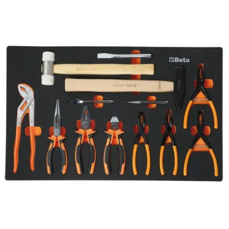 Il vassoio morbido MS3 Beta è un assortimento di utensili disposti su termoformato in EVA pratico e completo. Questo prodotto si adatta perfettamente a tutti i modelli di cassettiere e carrelli arredo officina Beta, ma risulta adeguato anche per altre soluzioni di arredamento.Questo articolo è composto da:- 1x Beta 1082CM Tronchesi a taglienti diagonali 160 mm- 1x Beta 1150CM Pinze universali a grande effetto 180 mm- 1x Beta 1166CM Pinza a becchi mezzitondi 200 mm- 1x Beta 1032-180 Pinza becchi dritti per anelli elastici- 1x Beta 1034-170 Pinza per anelli seeger, becchi piegati a 90°- 1x Beta 1036-175 Pinza per anelli seeger becchi dritti- 1x Beta 1038-175 Pinza per anelli seeger, becchi piegati a 90°- 1x Beta 1048C Pinza regolabile a cerniera chiusa 250 mm- 1x Beta 1370C Martello tipo tedesco 500 g- 1x Beta1390C Mazzuola 35 mm- 1x Beta 32C Bulino 4 mm- 1x Beta 34C Scalpello piatto tipo normale 150 mm- 1x Beta 36C Ugnetti tipo normale 130 mm Utilizzo: Cassettiere e carrelli Beta
