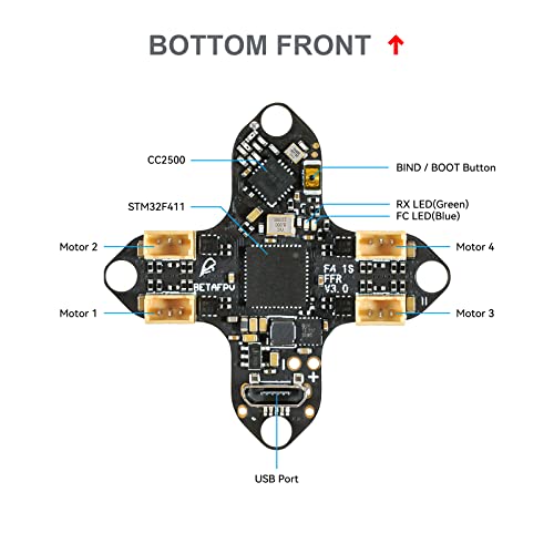 【CC2500 Chips】BETAFPV F4 1S 5A flight controller comes with the built-in SPI Frsky receiver(CC2500 chip), which is compatible with Futaba S-FHSS, Frsky D8, and D16 protocol. Also, it reserves an SBUS port and a UART port, which is available for the SBUS protocol receiver or other external receivers.