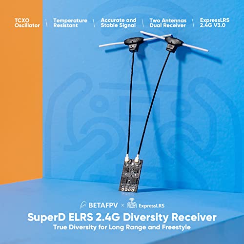 BETAFPV SuperD ELRS Diversity Receiver with Dual Receiver Chains 2 Antennas TXCO Tech Support CRSF Protocol for FPV Drone Fixed-Wing Aircraft Long Range Flying Aerial Photography FPV Freestyle Tricks