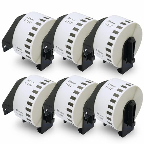 BETCKEY - 6 Rotoli DK-22225 Etichette a Lunghezza Continua Compatibile con Brother, 38mm x 30.48m, 6 Etichette per Stampanti di Etichette Brother QL