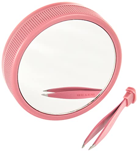 Beter - Doppio specchio d'ingrandimento x10 con luce a led, pinzette di precisione all'interno, design brevettato Oooh tweezers flash, specchio a mano con luce per la tua borsetta, colore rosa