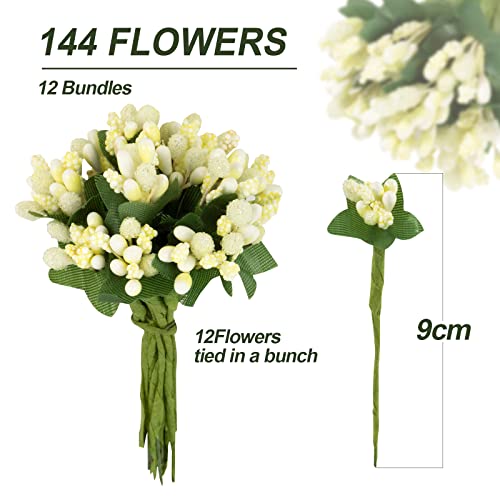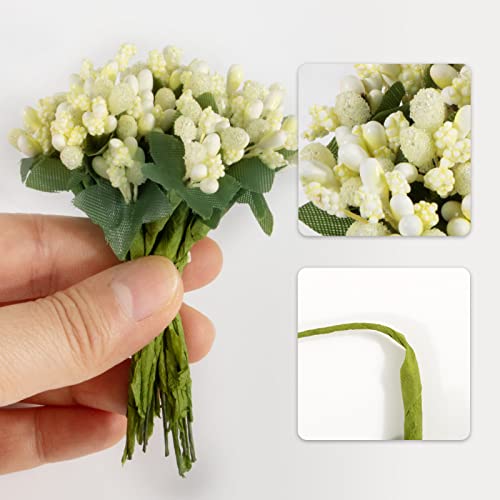 BETESSIN 144pz Pistilli Artificiali di Fiori per Bomboneire Mini Teste Artificiali Pistillo Fiori Finti con Stelo per Decorazione Centrotavola Segnaposto Matrimonio Nozze Compleanno Comunione Festa