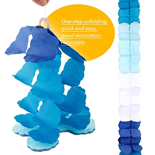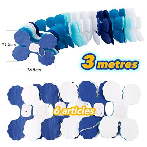 BETESSIN 6 Pezzi 3 Metri Ghirlande di Carta Azzurro Blu Quadrifoglio Festoni Colorato per Festa Decorazione Compleanno Battesimo Baby Shower Boy Nascita Carnevale Matrimonio