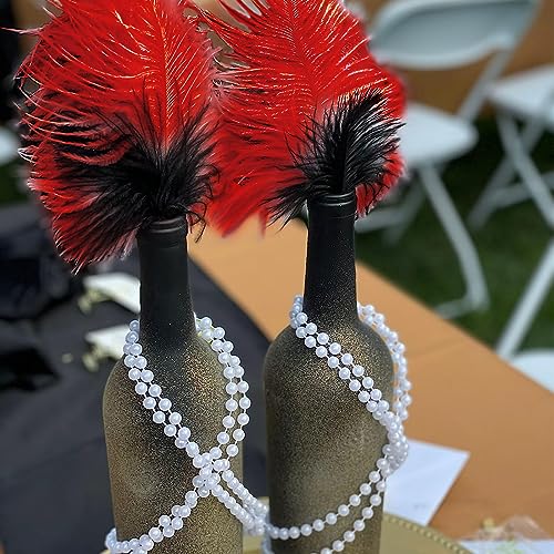 BETESSIN Piume di Struzzo Decorative Lunghe 30-35cm Ghirlanda di Perle Finte Fili Bianco Piume di Struzzo per Decorazione Matrimonio Nozze Festa Addio al Nubilato Notte Carnevale Halloween Rosso