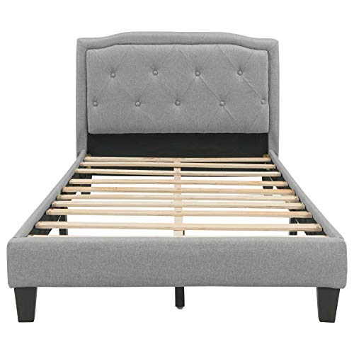 Betos Letto singolo 90 x 200 cm, struttura letto con rete a doghe di legno, letto imbottito con bottoni decorativi, per camera da letto, adulti e ragazzi, rivestimento grigio chiaro
